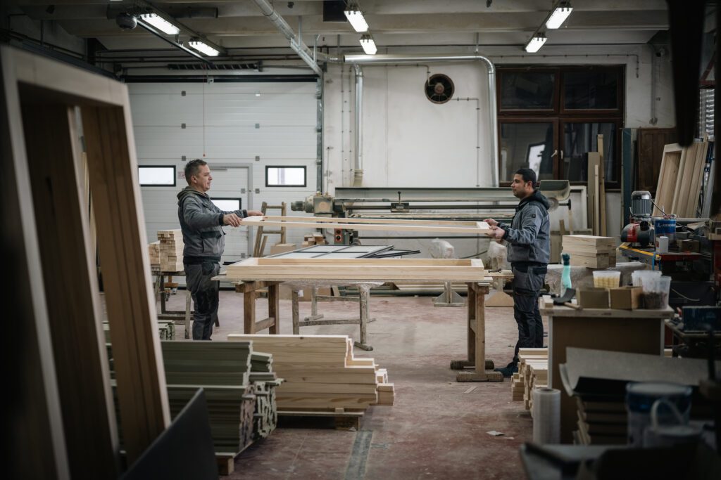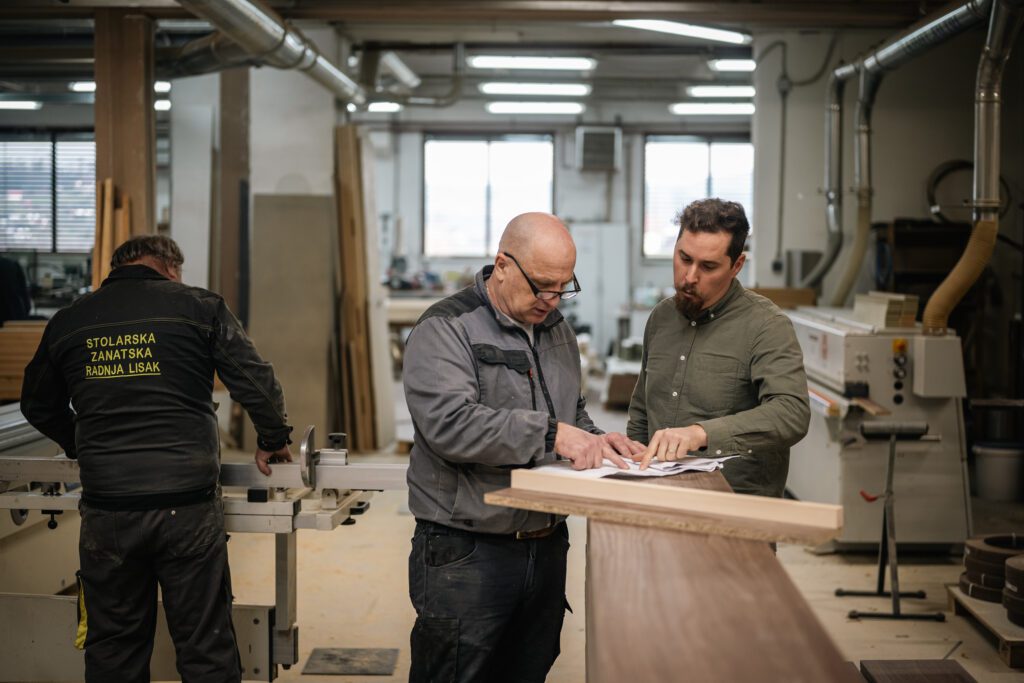 U radionici je posao jasno podijeljen. Netko radi samo vrata. Netko je zadužen za namještaj. Netko za vanjsku stolariju. „Ne može danas jedan čovjek raditi sve“, kaže Matija. „Specijalizacija je nužna.“